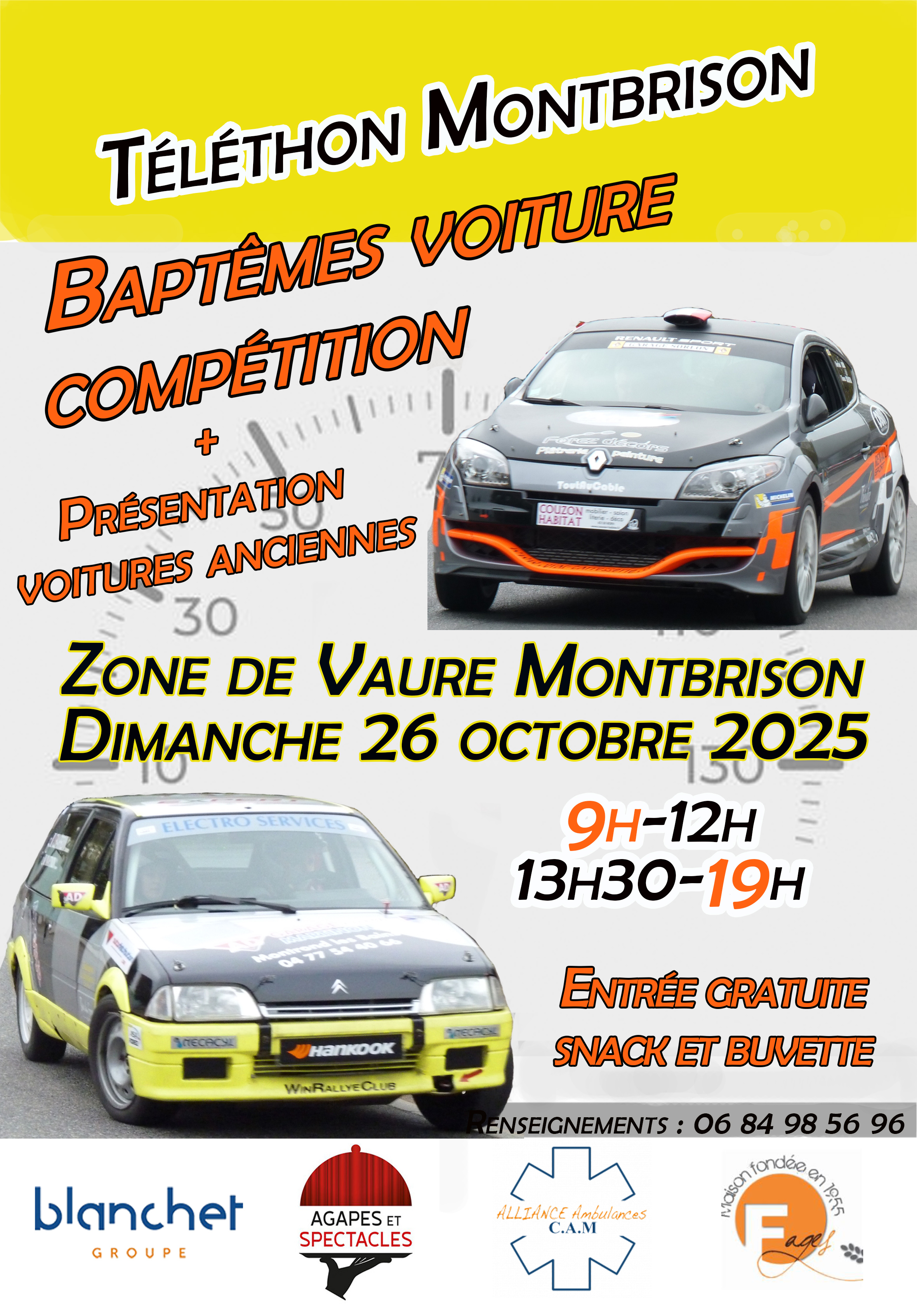 Le dimanche 26 octobre de 9h à 18h Objectif’T avec l’aide de ses partenaires vous invite à prendre la place du copilote pour des baptêmes en voitures de rallye au profit du Téléthon.