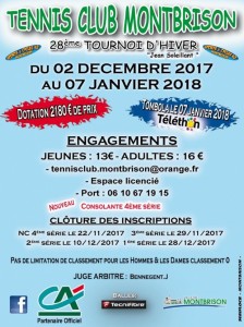 Le Tennis Club de Montbrison fidèle au Téléthon Comme chaque année le TCM à l’occasion de son tournoi d’hiver en salle organise une tombola au profit du Téléthon lors de la finale le dimanche 7 janvier 2018.